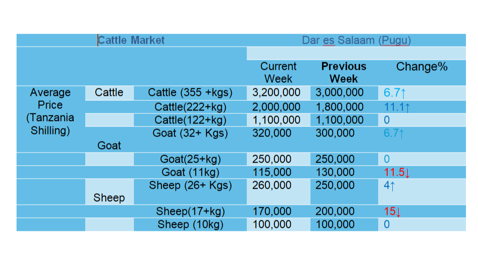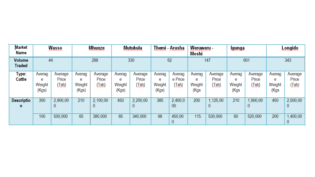 Taarifa ya soko la mifugo (ng'ombe) kwa wiki inayoishia Novemba 26, 2025