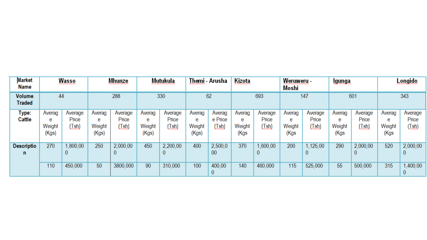 Taarifa ya soko la mifugo (Ng'ombe) kwa wiki inayoishia Septemba 24, 2025